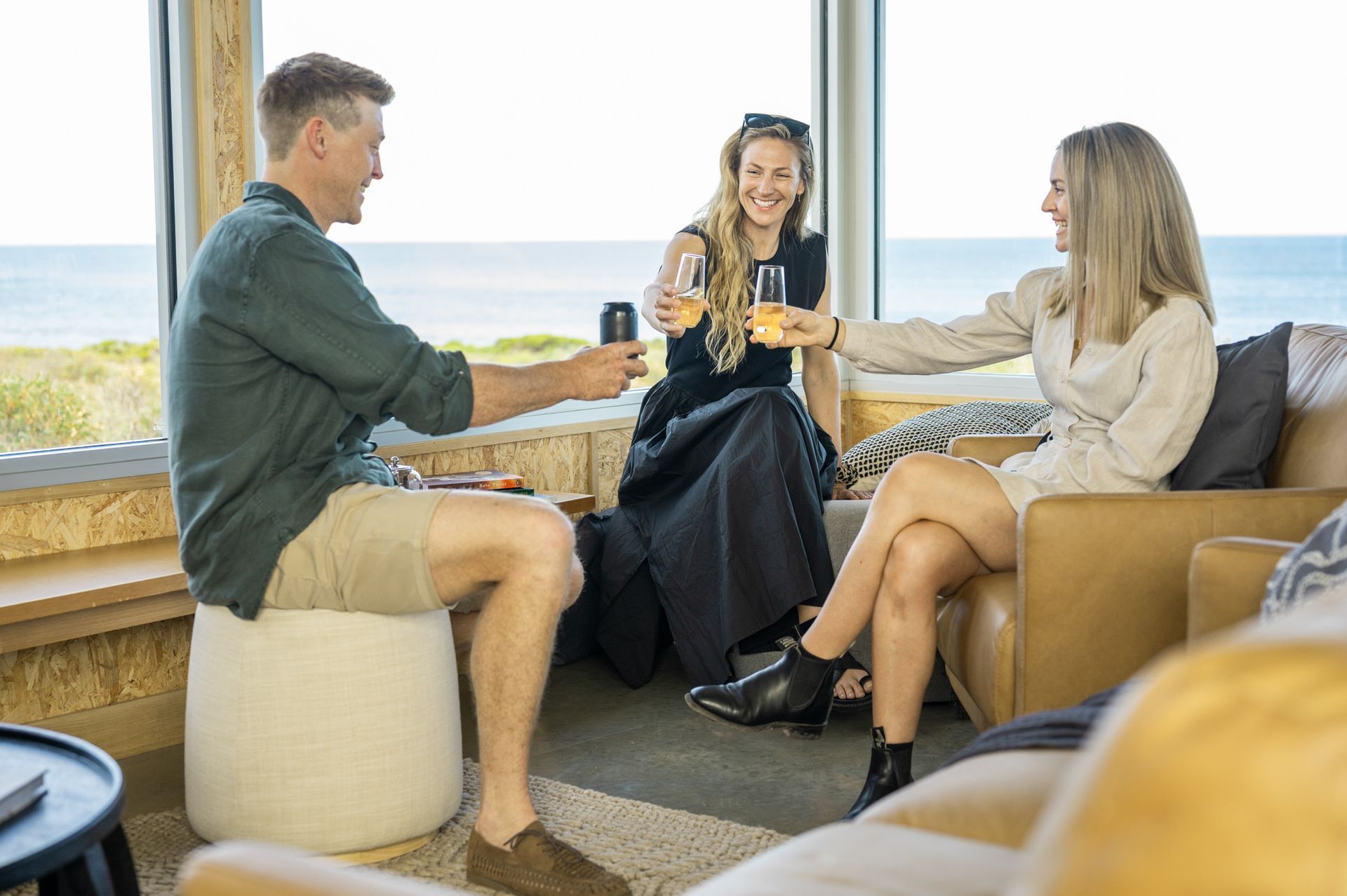 With uninterrupted 180° views of the Southern Ocean, every moment is framed by nature – whether you’re soaking in the freestanding window bath, relaxing by the fire, or preparing a meal in the chef’s kitchen. Each pavilion is crafted to give you both connection and privacy, with cosy fireplaces, remote-controlled blinds, and sun-drenched decks designed for quiet mornings or long, indulgent evenings.