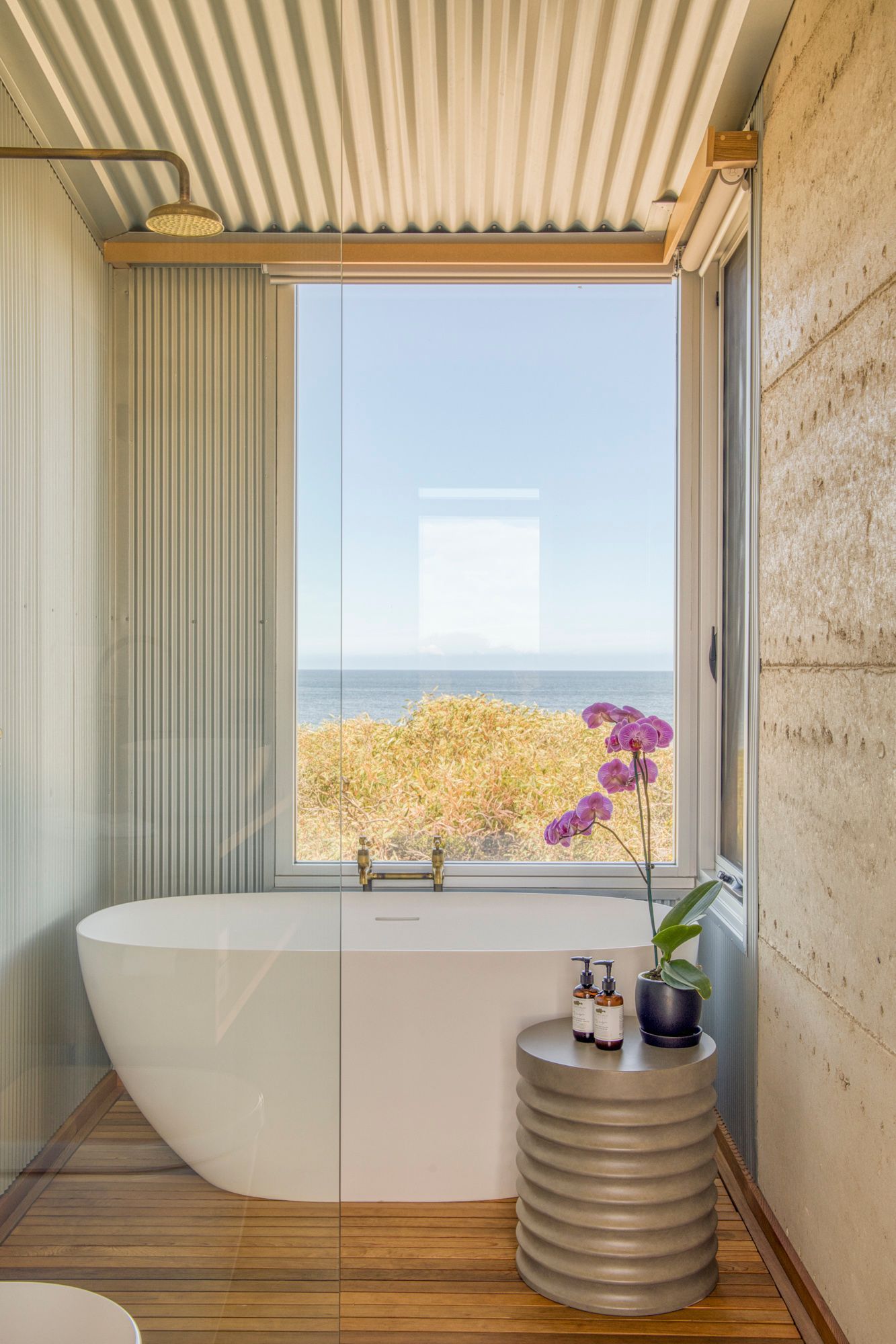 Indulge yourself in our freestanding window bath. With incredible views of the bay. The smell of Cedar built floor will captivate you on entrance