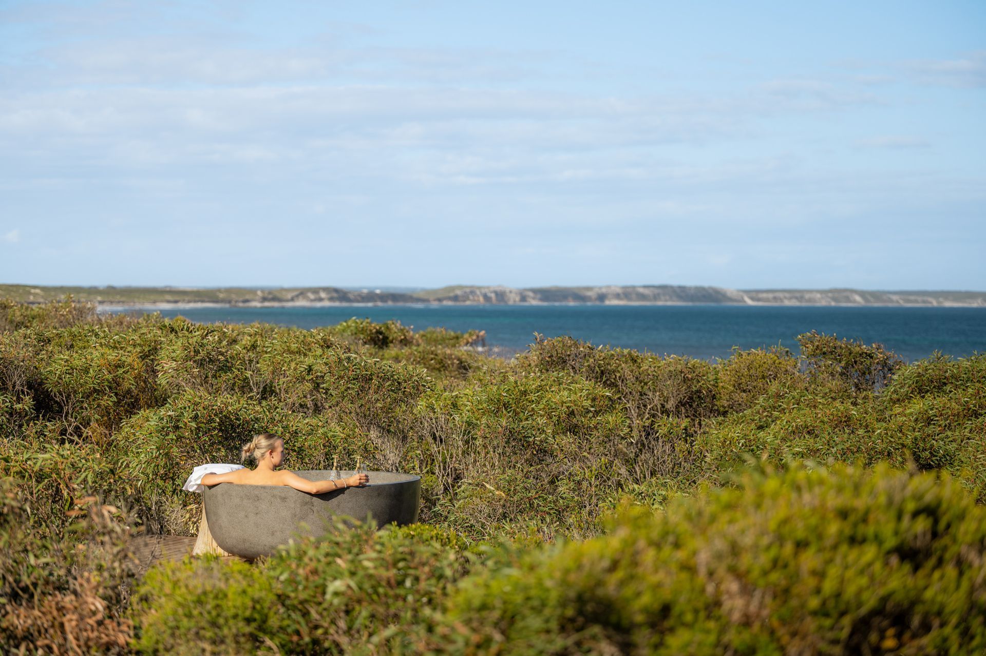 Immerse Kangaroo Island, thoughtfully designed with privacy in mind, consists of three separate pavilions. To the South, Pavilion 1 comprising of two generously sized King rooms separated by a bathroom. Soak the day away in our freestanding window bath, complete with 180 degree Southern Ocean views.